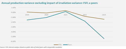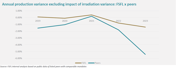 FSFL’s operating solar portfolio is the best in the UK. Our sites consistently outperform peers in converting solar irradiation into electricity – a true measure of asset management's contribution – thanks to our dedicated team's decade-long experience and consistent application of advanced techniques.