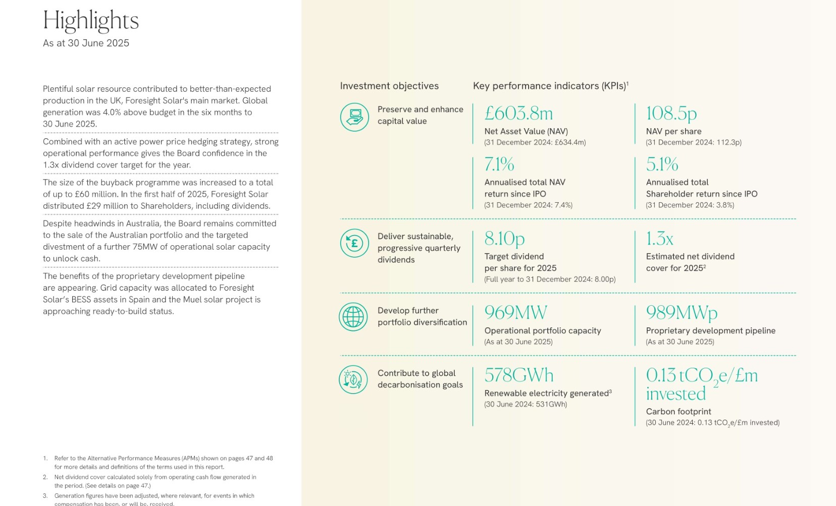 In a more visual update, we brought together the main highlights from the report in one place, detailing the movement in net asset value and the strong operational performance, as well as the active power price hedging programme – and its benefits.